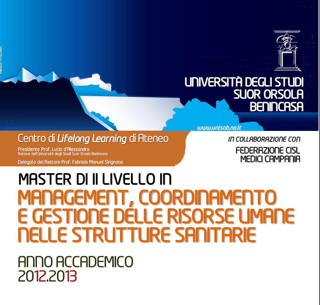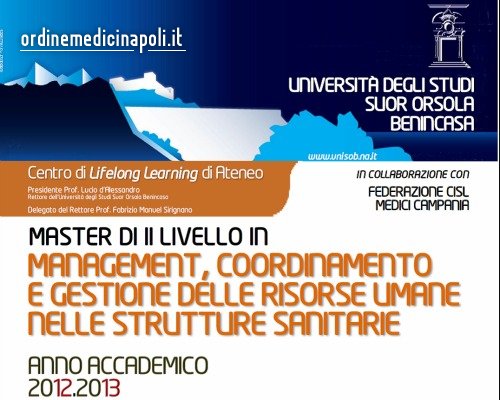 Master in Management, coordinamento e gestione delle risorse umane nelle strutture sanitarie. Scadenza 29/04/2013