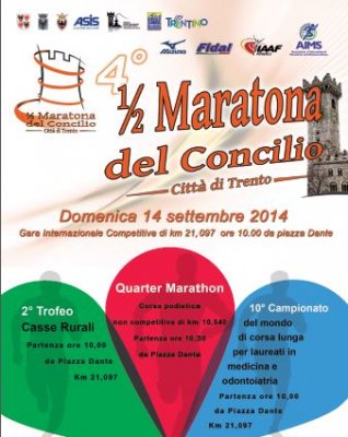 Domenica 14 settembre 2014, si corre la IV edizione della Mezza Maratona del Concilio della città di Trento (10° Campionato di corsa lunga per medici e odontoiatri).